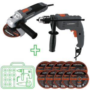 MINIESMERIL DE 4-1/2″ 600W 11,000 RPM 2 DISCOS DE DIAMANTE DDS115,10 DISCOS LAMINADOS DFZ11540/29,25 DISCOS DE CORTE DC4.5 AGD37 SYNERGY
