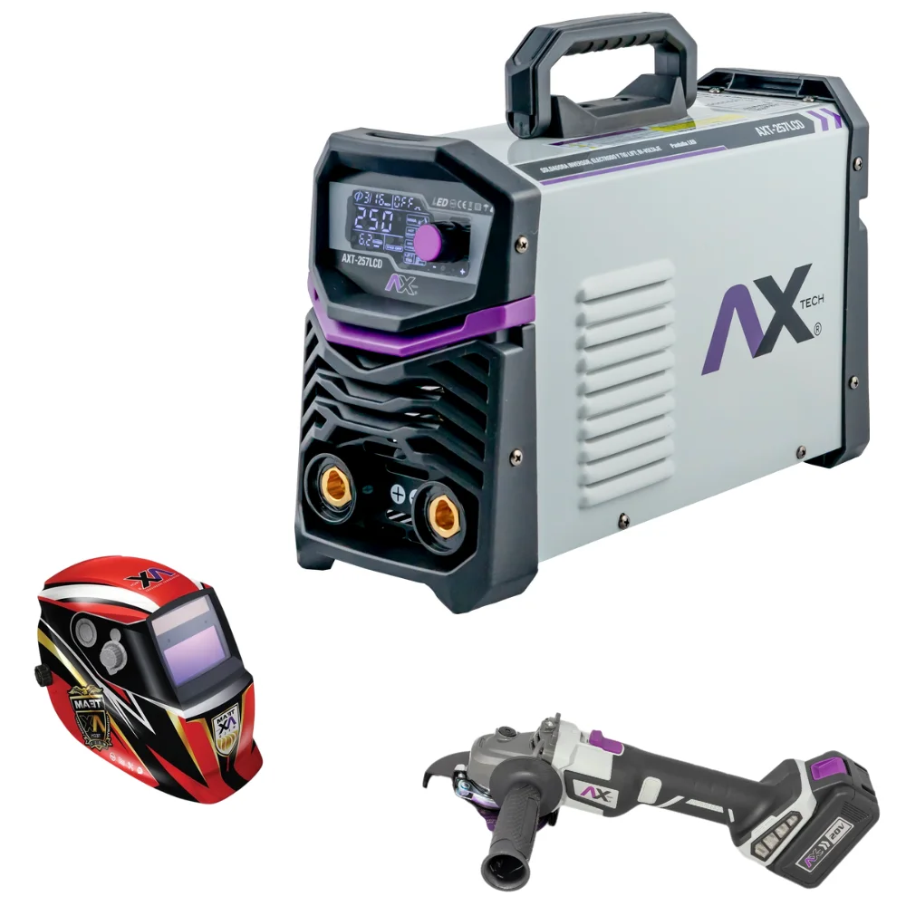 AXTECH SOLDADURA INVERSOR ELECTRICO Y TIG LIFT 250A CON CRETA DE DISEÑO Y AXT-ES115B9. AXTECH AXT-257LCD-C5