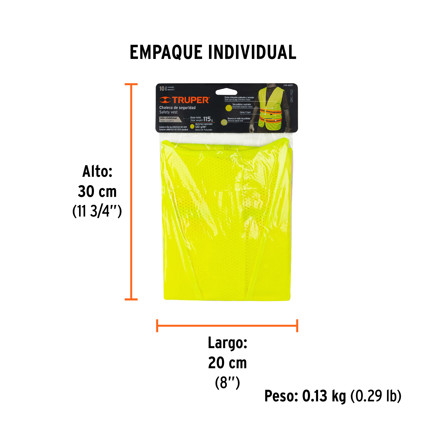 Color Verde Talla Unitalla Visibilidad de día 40 m Visibilidad de noche 150 m Peso 120 g/m² Peso total 115 g