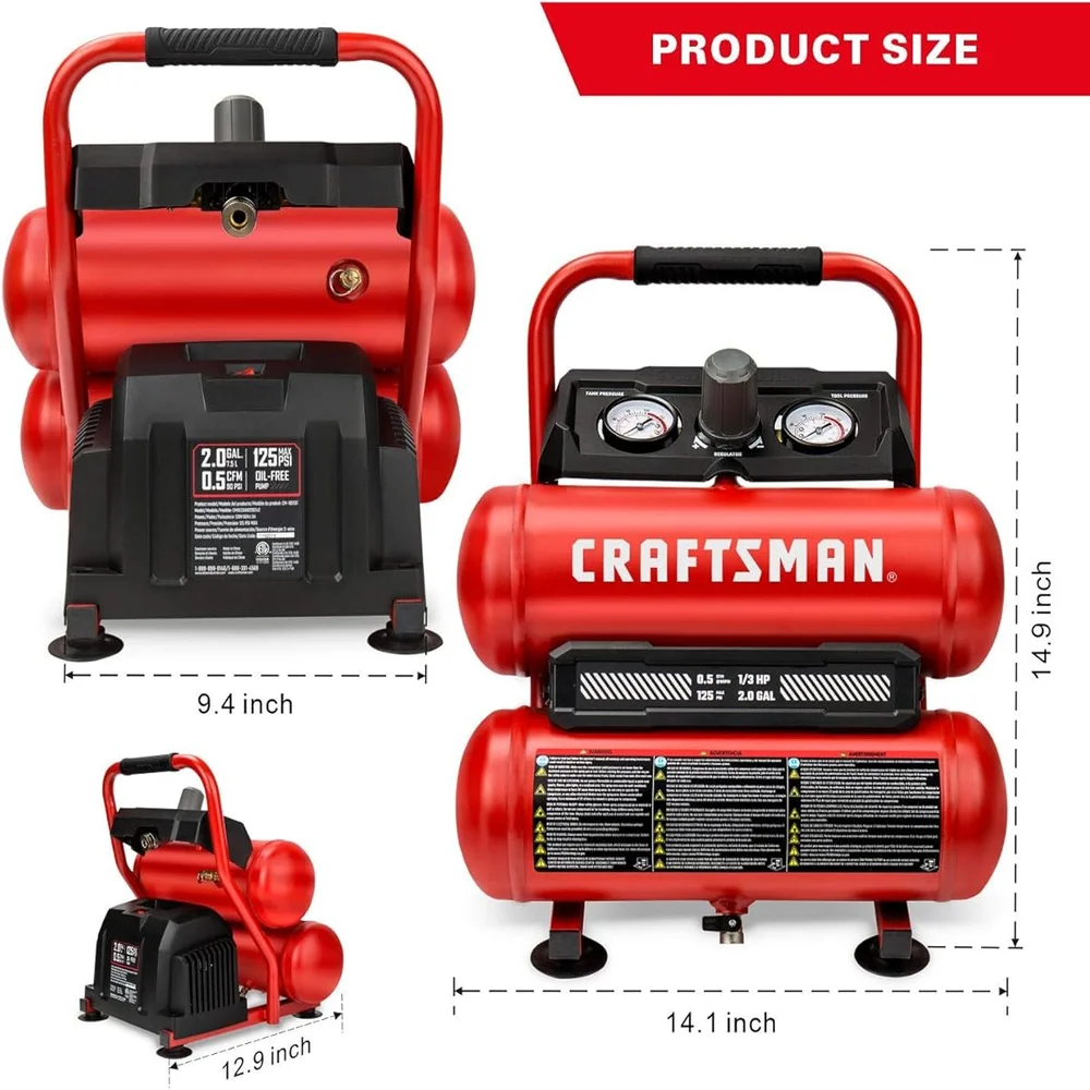TWIN STACK – Doble tanque: Más rápido, más potente. CRAFTSMAN los compresores con el tiempo de recuperación más rápido. Compresor de aire portátil para todas sus necesidades profesionales. Cuenta con una bomba sin aceite que lo hace más duradero y libre de mantenimiento. CRAFTSMAN herramienta para aquellos que nunca dejan de hacer.