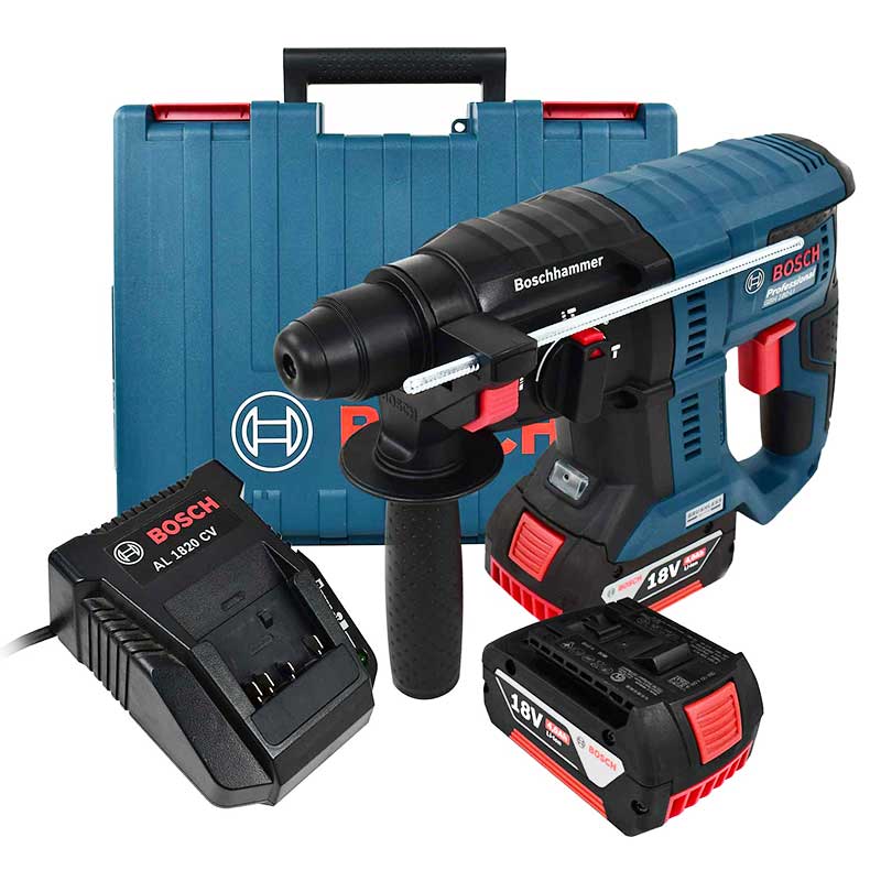 El Martillo Perforador inalámbrico Bosch GBH 180-LI de 18V, es ideal para trabajos profesionales en construcción, reformas e instalaciones en general. Tiene un sistema de cambio rápido de accesorios SDS-Plus y proporciona 20% más agujeros que su versión anterior. Viene con motor sin escobillas de carbón libre de mantenimiento, con el doble de vida útil y tiene más autonomía. Además, viene con luz de led, para trabajar en áreas con poca iluminación. Esta herramienta es 100% compatible con baterías y cargadores Bosch de 18V. Esta versión del producto incluye 2 baterías de 4,0 Ah, 1 cargador GAL 1820, 1 empuñadura auxiliar, 1 limitador de profundidad y maletín plástico. Cuenta con 1 año de garantía Bosch.