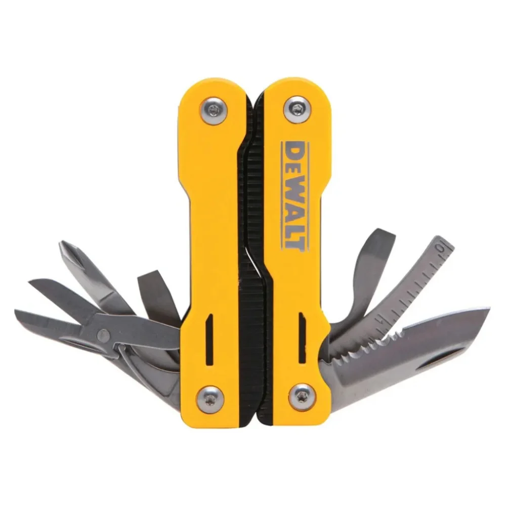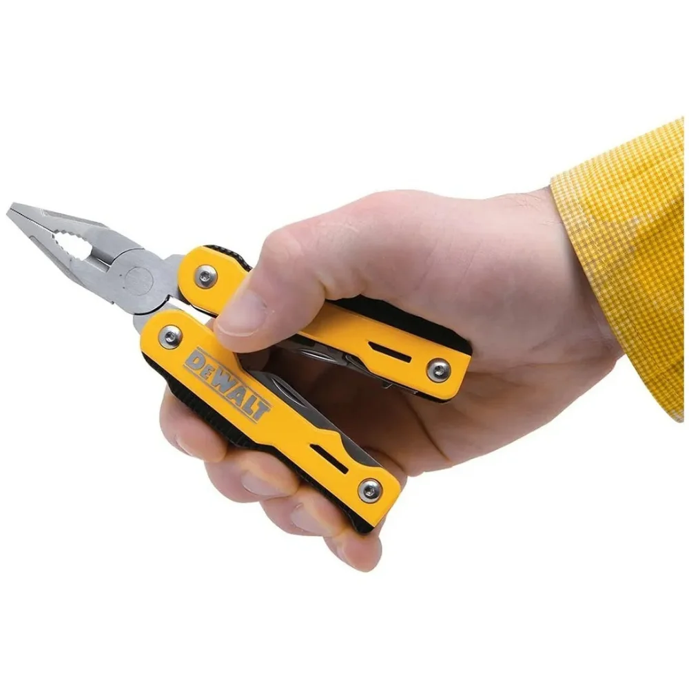La Multiherramienta Navaja 16 En 1 Dewalt Dwht71843 03902400 de color amarillo es un dispositivo versátil diseñado para una apertura rápida y fácil, permitiendo el cambio de cada una de las herramientas de manera eficiente. Fabricado con herramientas de acero inoxidable, asegura una larga vida útil.