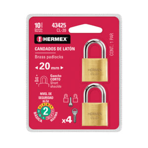 CANDADO DE LATÓN 20MM, GANCHO CORTO, BLISTER 2 PZAS. TRUPER 43425